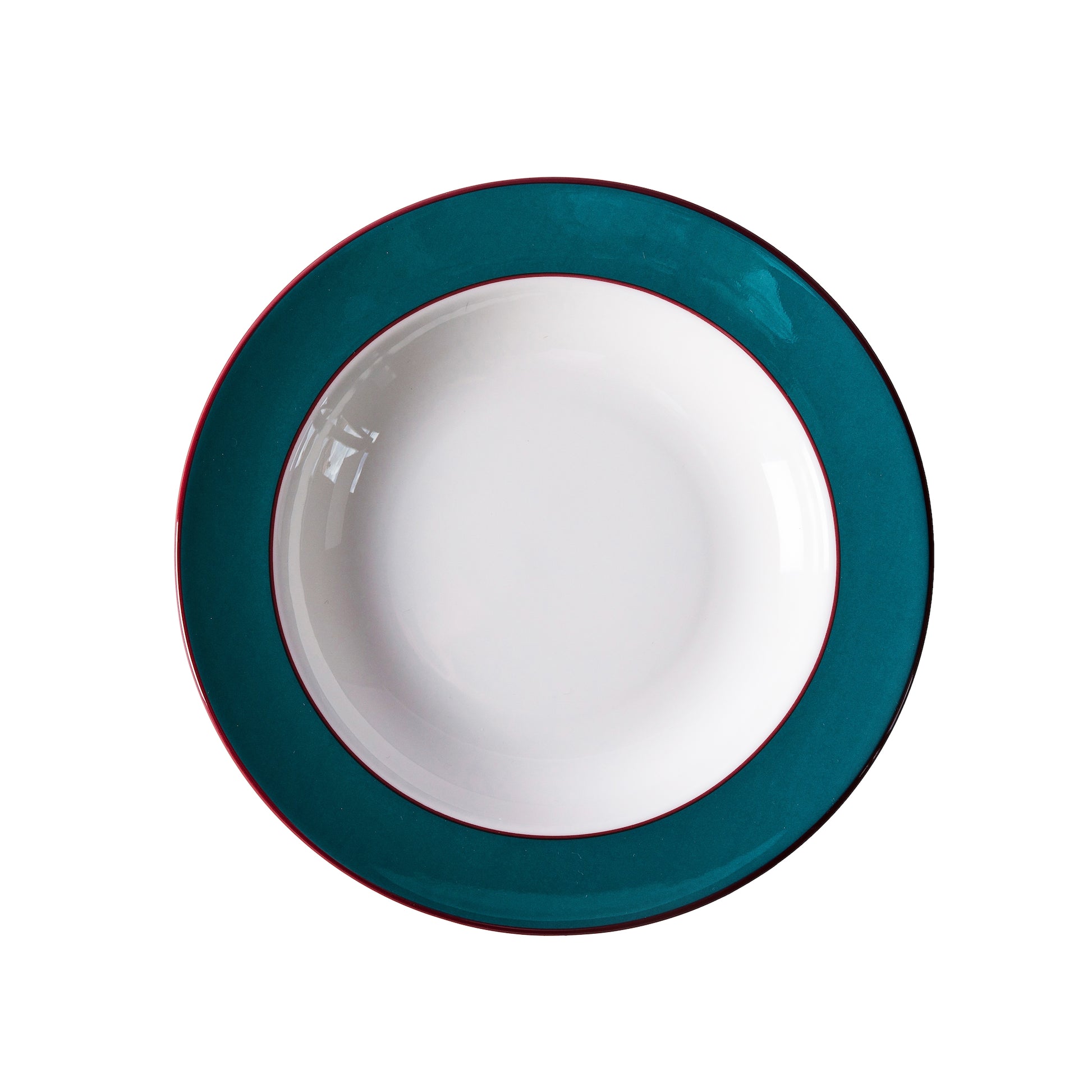 A beautiful bone china rimmed soup bowl hand crafted in England.