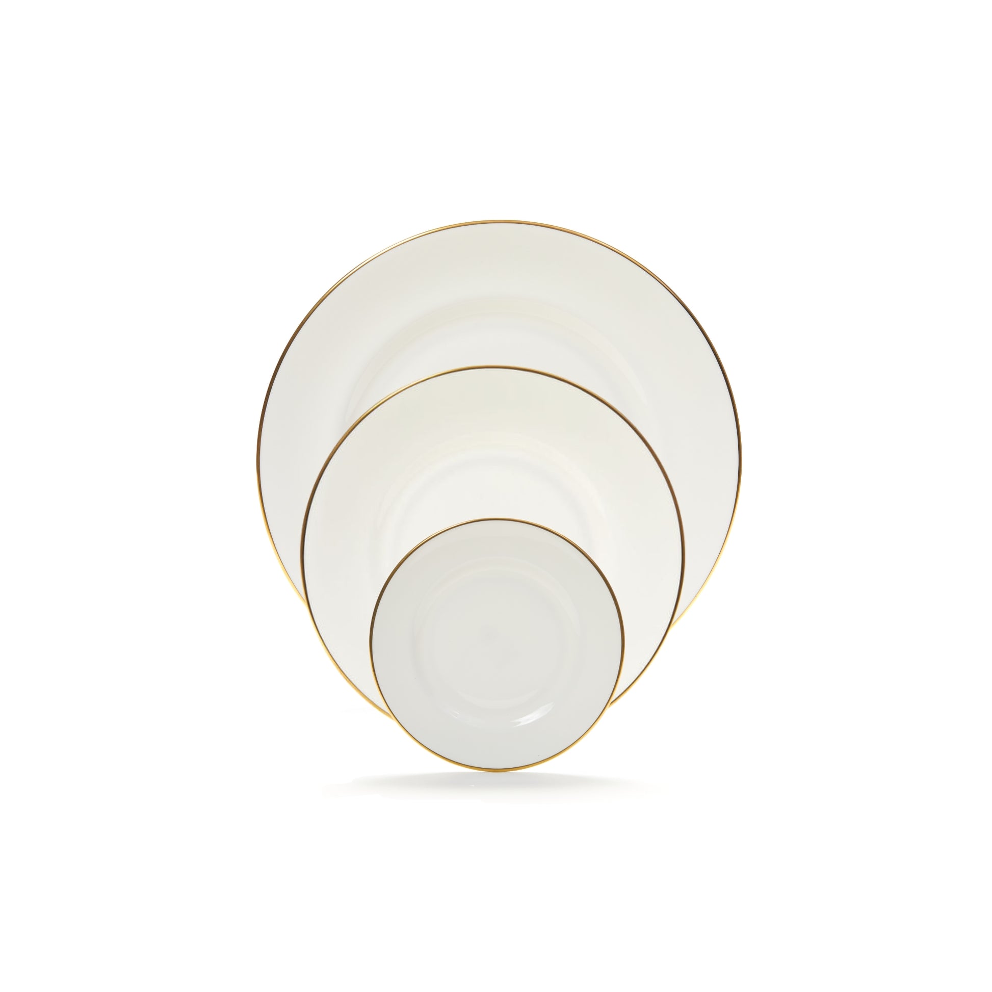 White fine bone china dinnerware with hand-painted 24-carat burnished gold rim